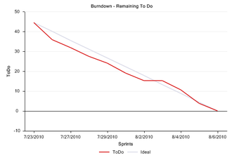 Here's our burndown chart of the 3rd iteration. It's created with use of VersionOne online agile project management tool (it's free for small teams with up to 10 developers!).