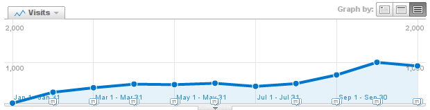 Even though I don't consider the primary aim of the blog to be popular, and have lots of visits, I feel better when I have more of them :-). I estimate the number of regular visitors as 100. And last month I even cleared 1k visits (pro month), as shown on the figure: