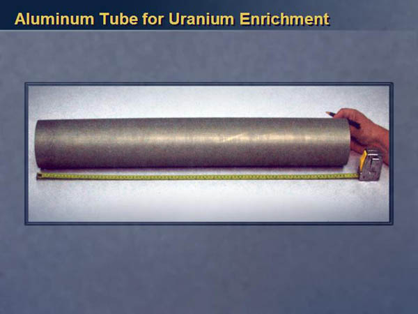 A week ago I watched "Fair Game" movie. Being a non-US national, I nevertheless consider the problems discussed there relevant. And one episode of a plot attracted me. One of the "casus belli" for attacking Iraq was that it purchased pipes that could be used to make nuclear weapons (in fact, they couldn't, and it all was a speculation of politicians). Above is a picture of such pipe.