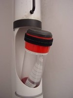 This pneumatic tube seems to transfer medical documents and samples packed into capsules. I saw such system in one of a banks I had an account at; there it was used to transfer documents between counters.