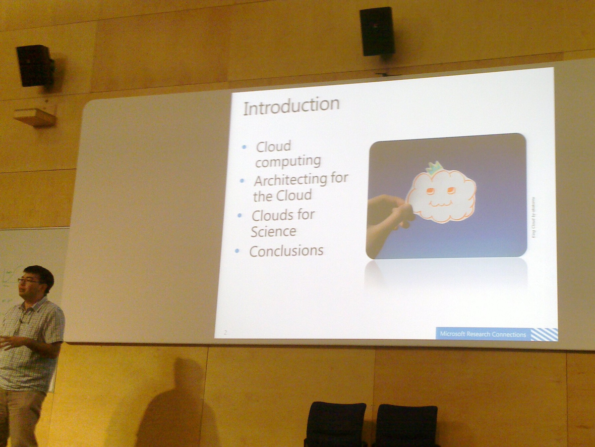 Kenji Takeda gave an overview of what Microsoft is doing in clouds. Aside from flying here and there on planes, Microsoft also builds datacenters, both at software and at hardware level. I learned that an interesting solution was developed for cooling datacenters. Instead of installing fans that just move the air away, simple physical observation could be used to improve over such an inefficient and sometimes failing solution as mechanical fans. The idea is to utilize the phenomenon that the hot air is lighter, and moves up. If the upper part of a large room is open, the hot air is removed from there, thus creating the draught that sucks the cold air in from the holes in the bottom.