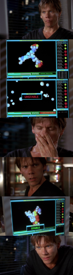I've seen something like this in the "Hollow Man" sci-fi movie, but it turned out to be the reality of a Microsoft Research laboratory! And even more, while the Hollow Man ran simulations (see sidenote), model checking techniques do not require even a model of the experiment: the assumptions about the nature of the processes being studied are verified as a mathematical abstraction instead of as a physical object, thus providing more reliable result.