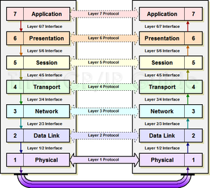 OSI model is an abstraction that aims to make the design of distributed computation systems easier. The chain of events that happen during a process of data transmission is separated to several separated layers: each layer has its own protocol, which is independent of the actual implementation of the underlying layers. You may learn more at the wikipedia.