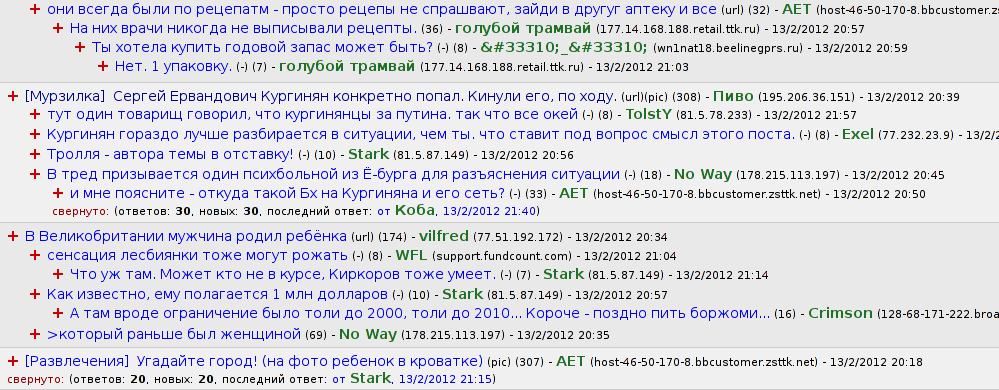 You may notice that all messages from all threads are displayed However, when I tried to display several thousands of messages on a single web page, which is an average figure for an board like this, it appeared deadly slow. Nobody would wait 32 seconds for the index page to show. Caching would help, but as several messages are posted each minute, most cache accesses would be misses.