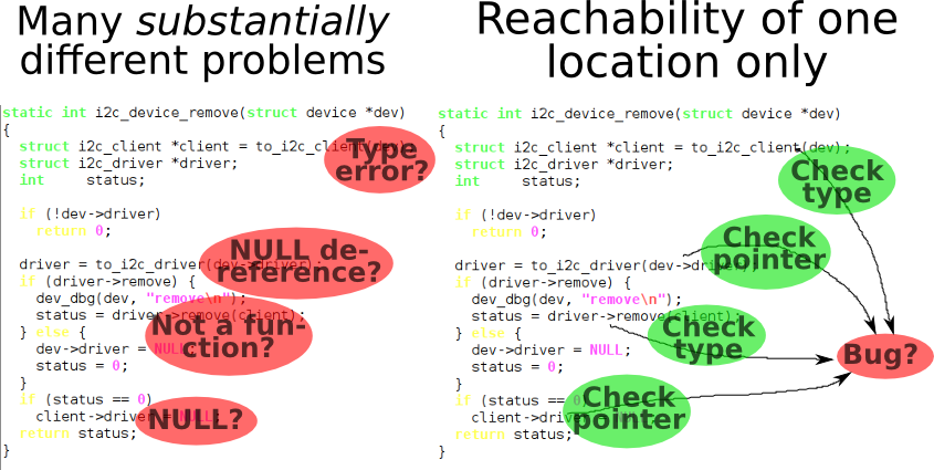 Still, the approach works. We found several dozens of kernel bugs in Linux Kernel device drivers—and keep in mind that we did not have the actual devices! Slowly, scientists make it less fragile, more reliable, and some day it will also commercialize to products based on different static analysis approaches, such as Klokwork and Coverity.