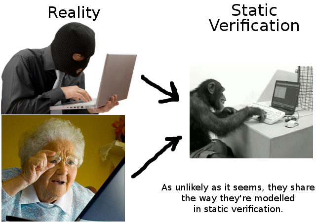 But, more on that later. It's still not clear how the multitude of possible patterns of security breaches can be studied generically. Do we have to study pointer dereferences, buffer overflows, memory allocation errors etc separately? Some tools try to, but there are fundamental approaches that address this problem of excessive diversity.