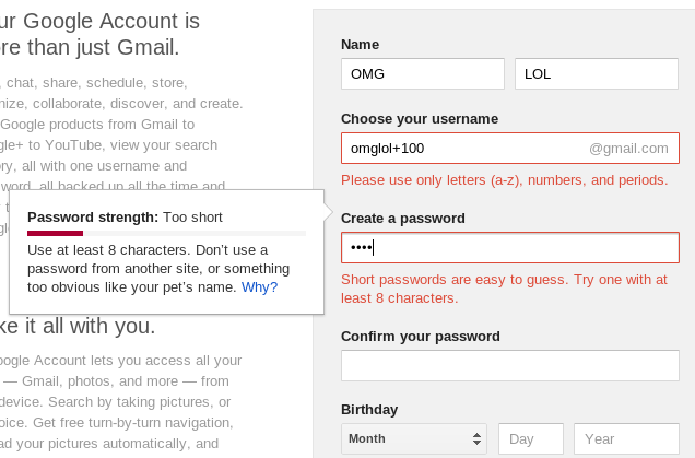 That's why you provide pop-up hints, color input fields red until user gets it right. Just take a look how New Google Account window hints you and checks your input as you type, even before you reach the "Submit" button: