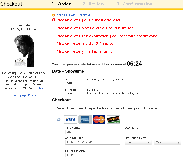 Apparently, form validator they employed for that checkout page made it so hard to configure nice just-in-time validations that they resorted to the abomination of "error messages for the form". Of course, that's an additional challenge: to make this configuration just flexible enough for your purpose (, and here's where your judgement, as of a professional, comes to play. I thing that flexibility is one of the reasons "cancan" wins over "declaratice_auithorization" in Ruby on Rails web authorization plugins: the former is much more flexible and easier to configure.