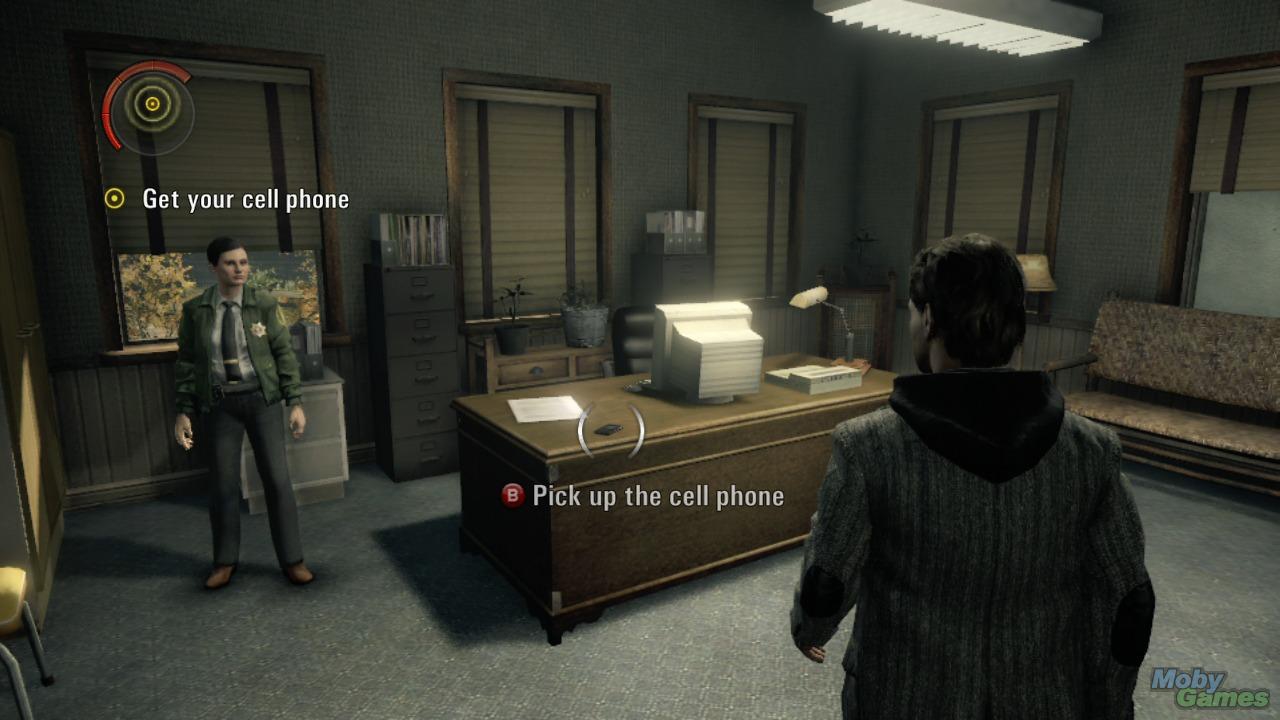 A somewhat modern Alan Wake game (I highly recomment it). The action item is highlighted, you don't need to hunt for it—and frankly this does improve the gameplay. Screenshot courtesy of MobyGames.